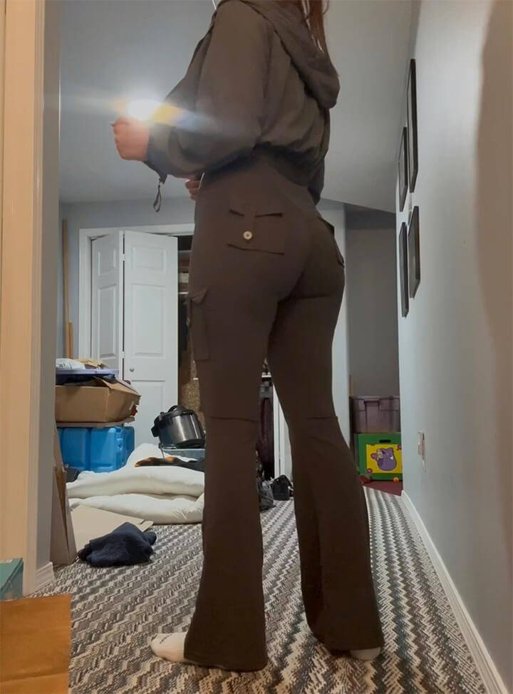 Say hello to your new go-to cargo leggings. These leggings feature a smoothing stretch waistband and a sleek flare-leg silhouette. Designed with functional cargo pockets for a modern edge, they balance style and practicality effortlessly.